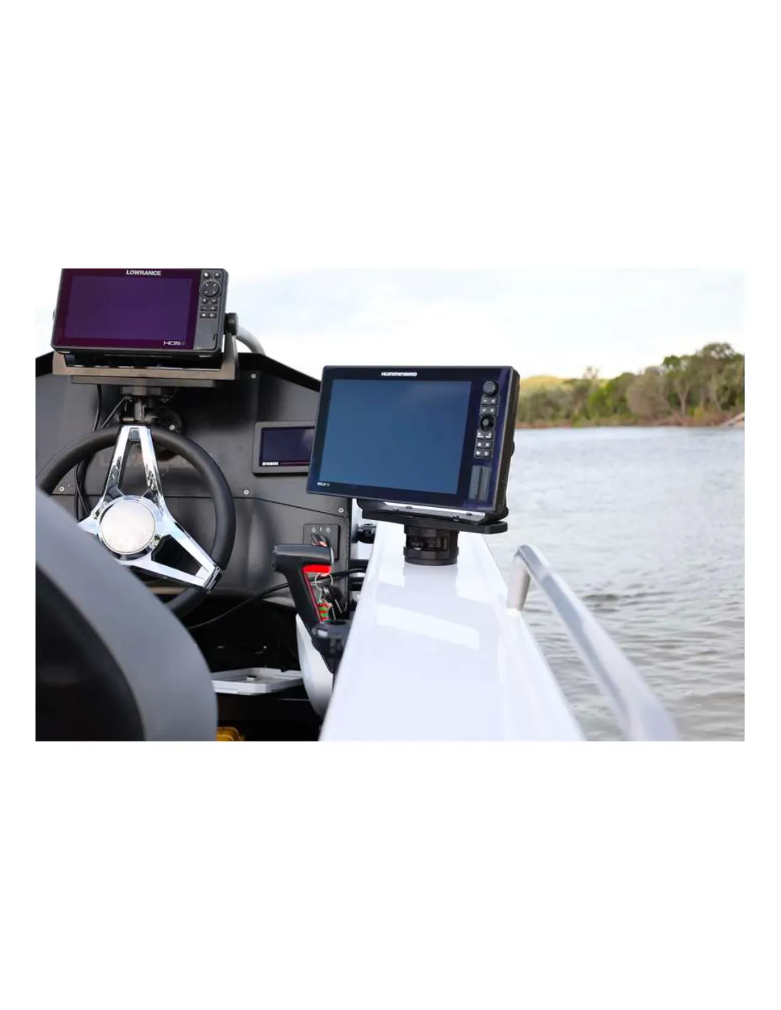 Diseño de montaje HEXXbase con rotación de base de 90° y rotación de plataforma de 90°. Estos 2 ejes de ajuste permiten una solución para las ubicaciones de montaje de sondas de pesca más complejas en su embarcación, como consolas y soluciones de montaje en proa.
