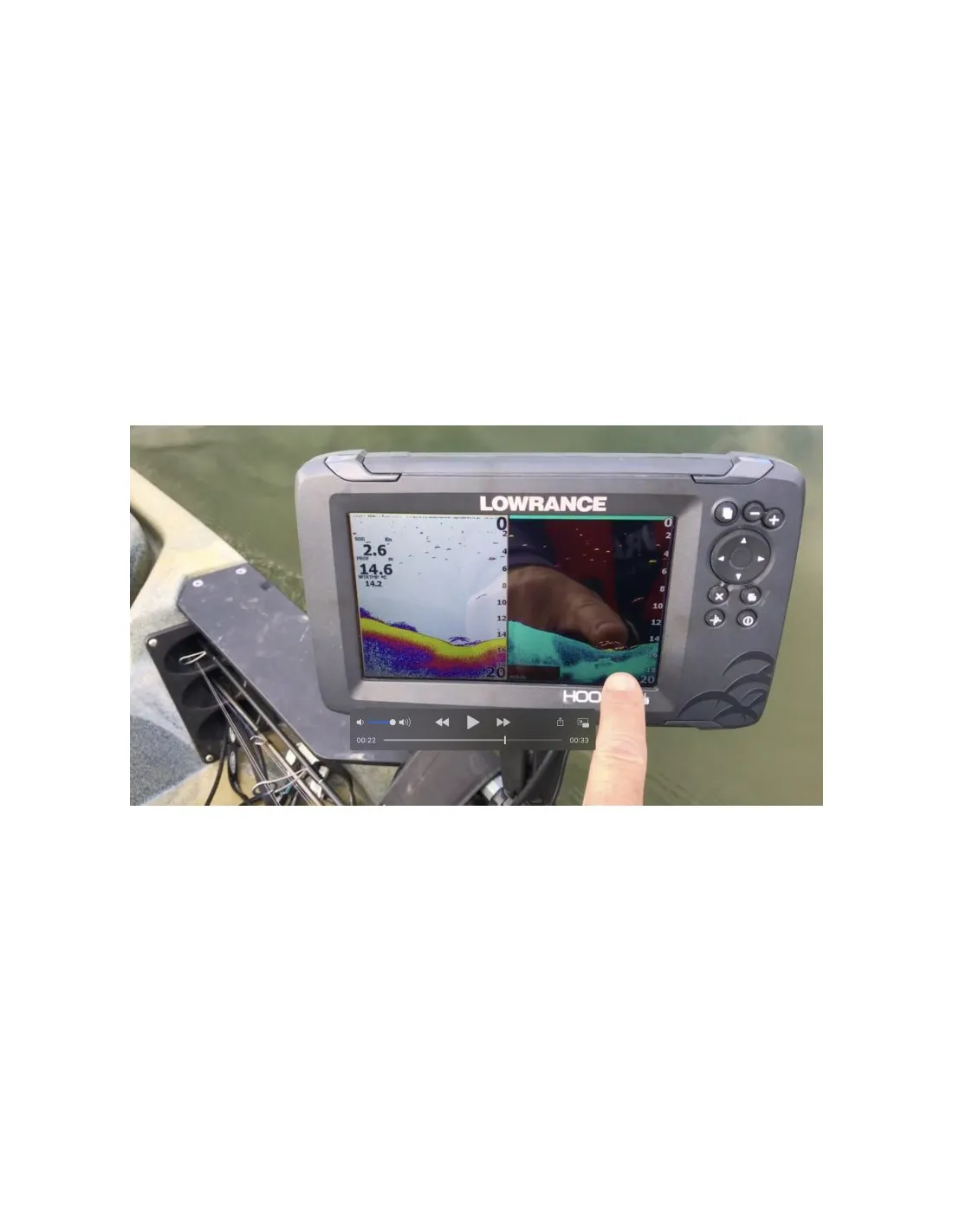 Tu sonda GPS Plotter Lowrance HOOK Reveal 5 PoweryMax Ready con Transductor popa HDI 83/200 300w kHz 455/800 kHz. La Sonda de pesca más vendida del mundo, con dos características principales; FishReveal ™ Detección inteligente de objetivos y genesis Live™ batimetrías en tiempo real..