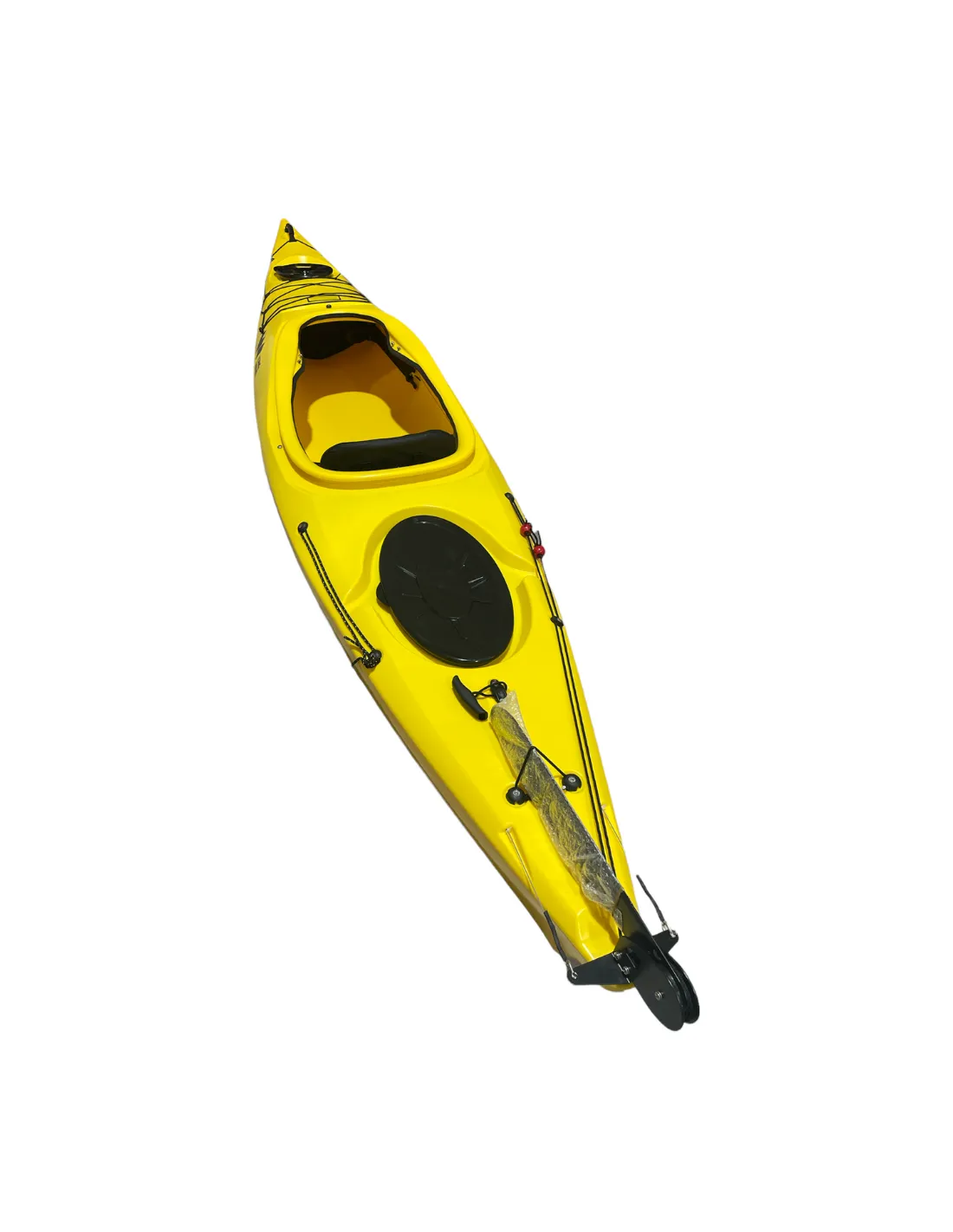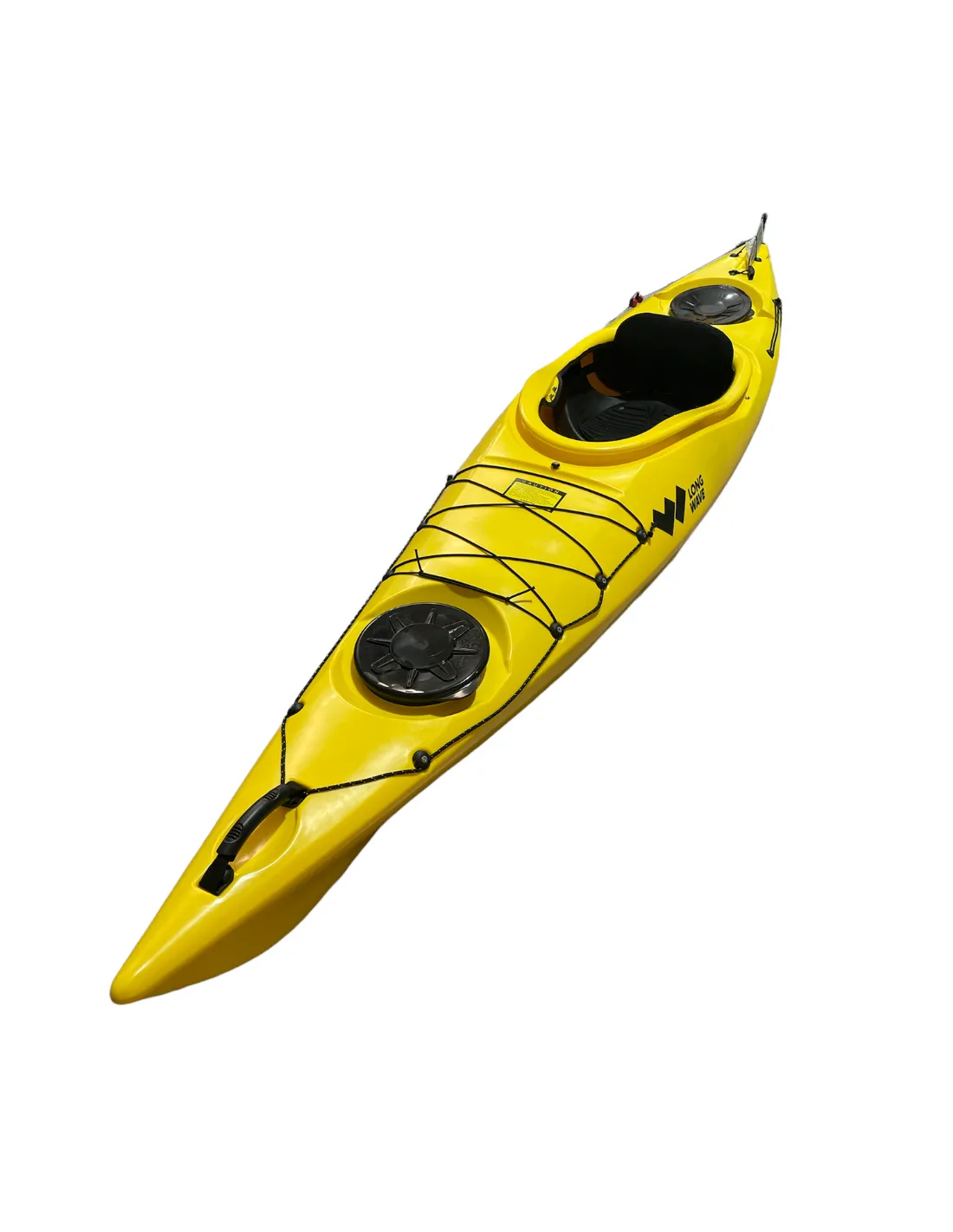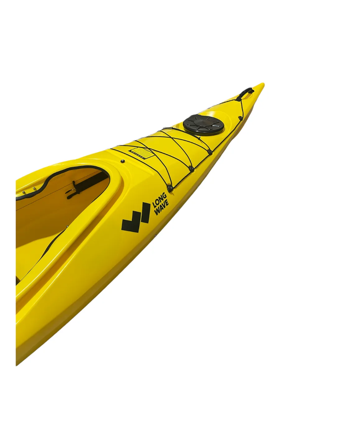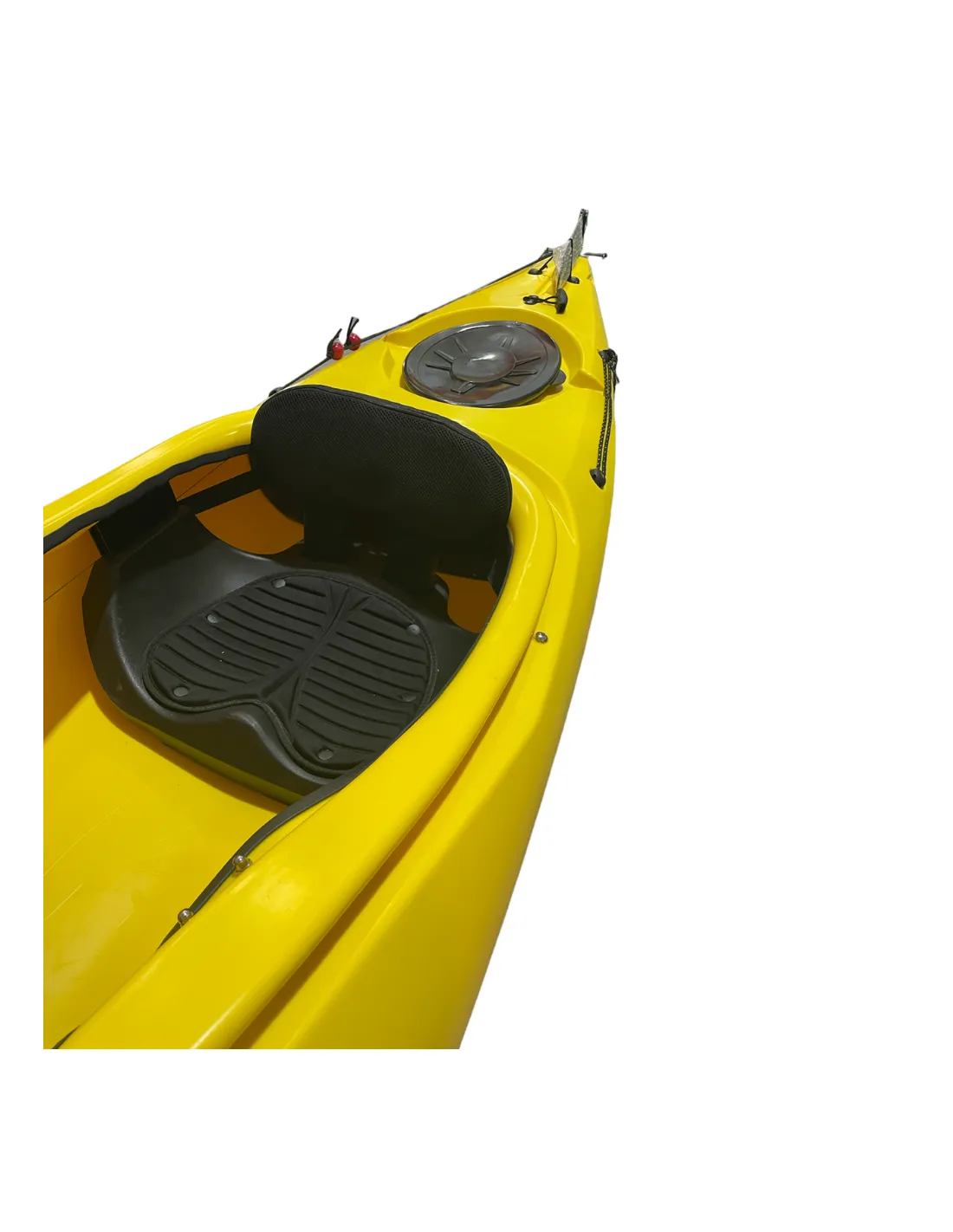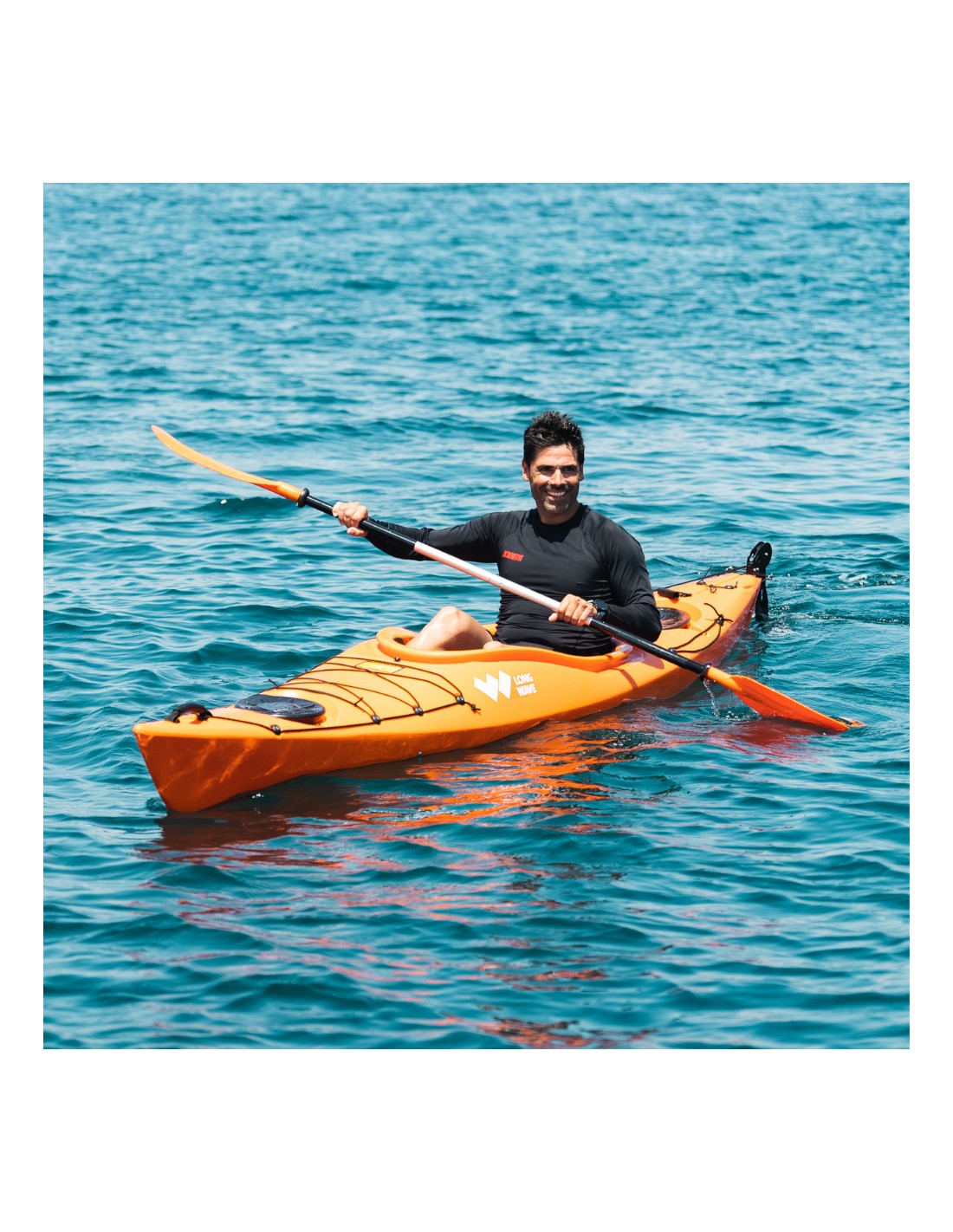 Kayak de travesía de iniciación con gran estabilidad, timón de serie y tambucho trasero. Ligero (22 kg), 350 cm de largo y capacidad de 130 kg. Ideal para excursiones de día en el mar.