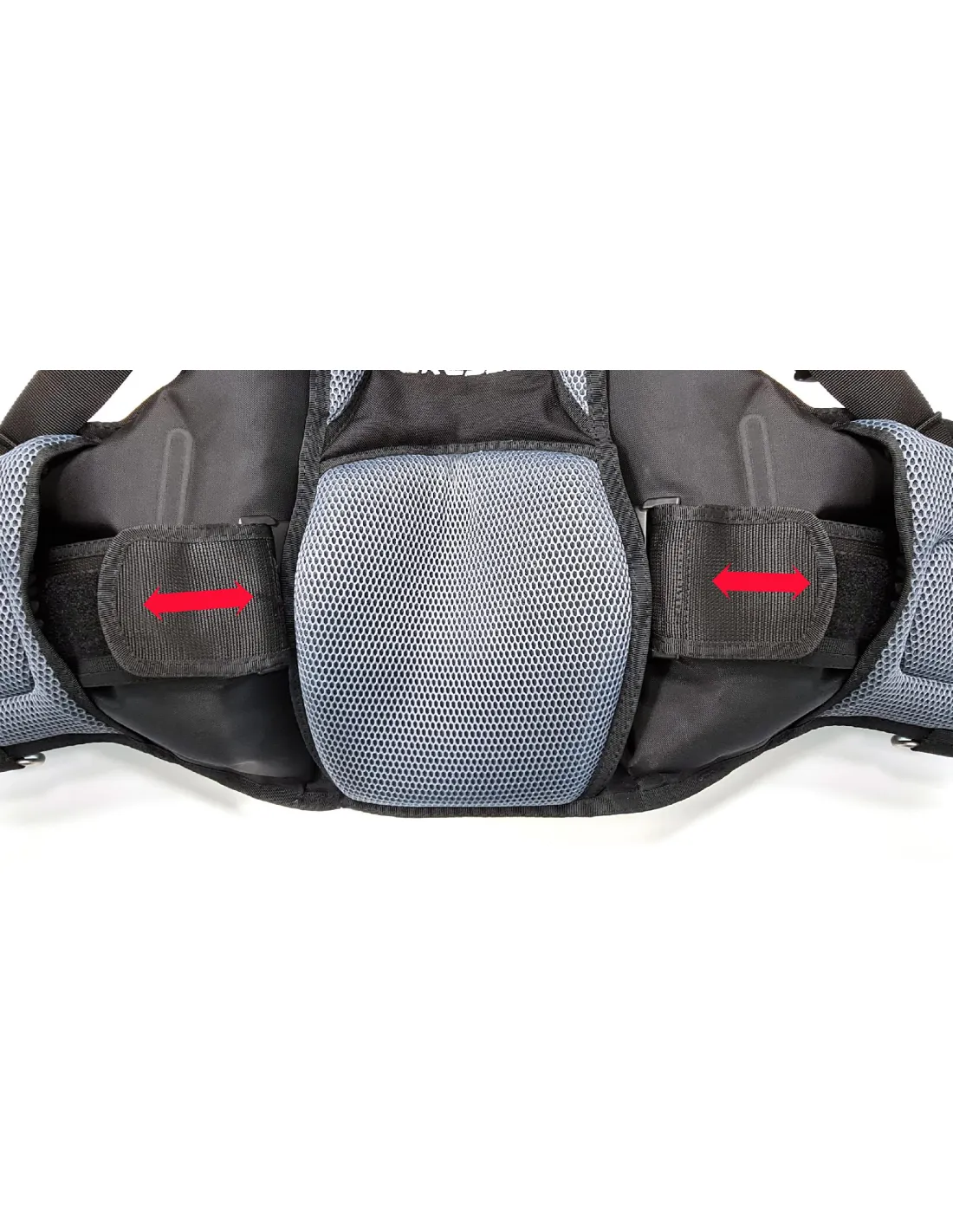 Systèmes de sécurité et d'ajustement : système de poids LAS 2.0, sangle de poitrine réglable et gonfleur direct facile à retirer.