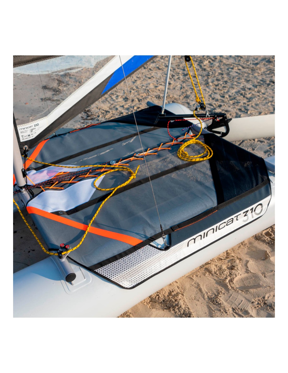 Avec les flotteurs 310 pré-installés sur le cadre principal et le trampoline, l'installation de la nouvelle génération de MiniCat 310 Sport ne prend que 15 à 20 minutes. Conçu pour les navigateurs individuels qui aiment la vitesse et la performance ou pour les familles à la recherche d'un voilier compact et sûr, le MiniCat 310 Sport est parfait pour ceux qui veulent aller rapidement sur l'eau et comme accessoire de yacht qui nécessite un montage rapide sur le pont.
