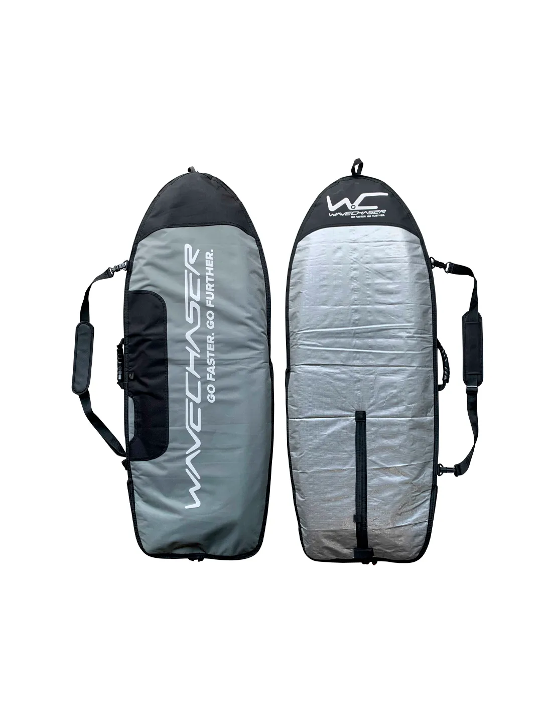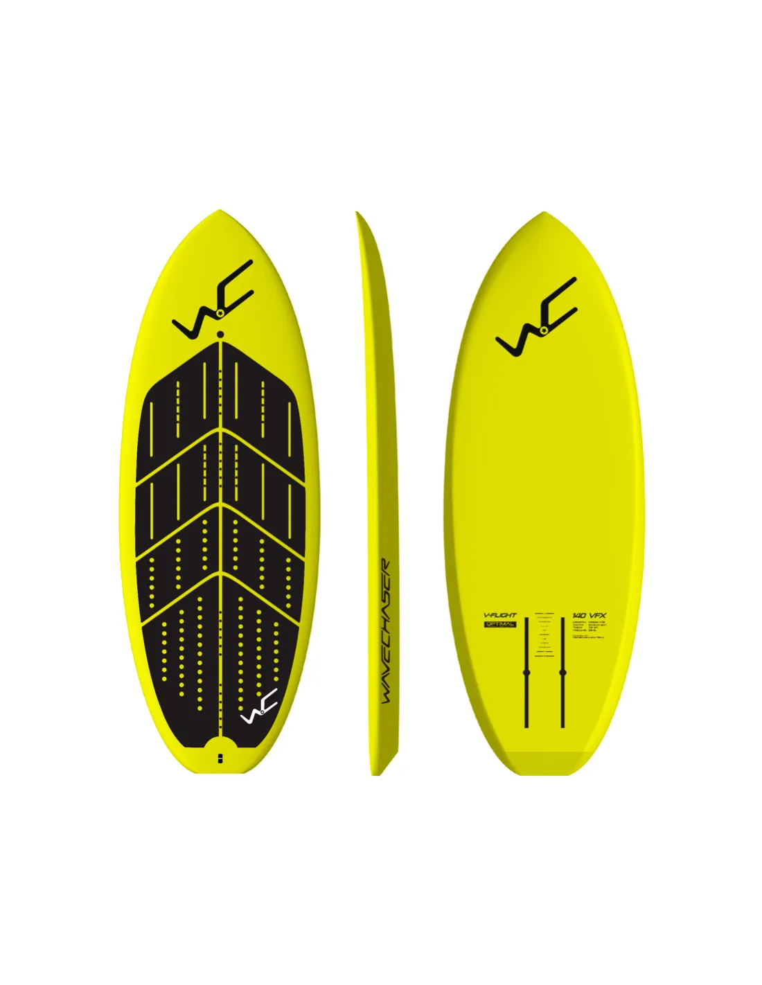 Wave Chaser VFX foilboards are shaped like an air piercing bullet with the wide point pulled to the rear. Redistributing nose weight and volume to the rear assists flight control both aerodynamically (less wind-affected) and mechanically (the centre of balance is closer to the mast for improved pump action). The rocker and nose lift is slightly increased for more clearance and the forward under-rails are blended for touch down control.