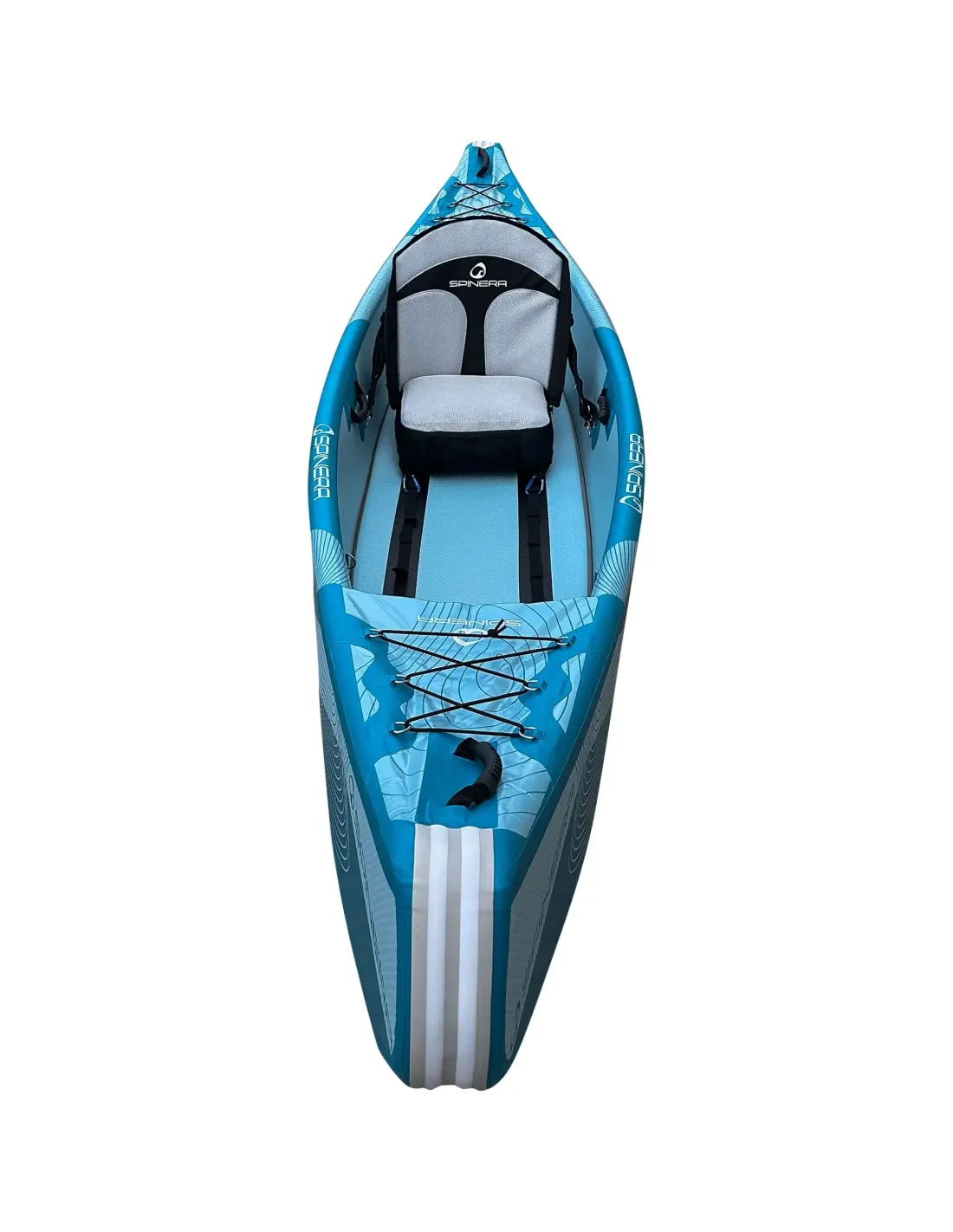 Este caiaque destaca-se pela sua construção robusta, com fundo e paredes laterais reforçados com tecido HDDS, o que lhe confere uma estabilidade e durabilidade excepcionais que o acompanharão durante muito tempo. Tem muito espaço de arrumação à frente e atrás, facilitando o transporte dos seus pertences.