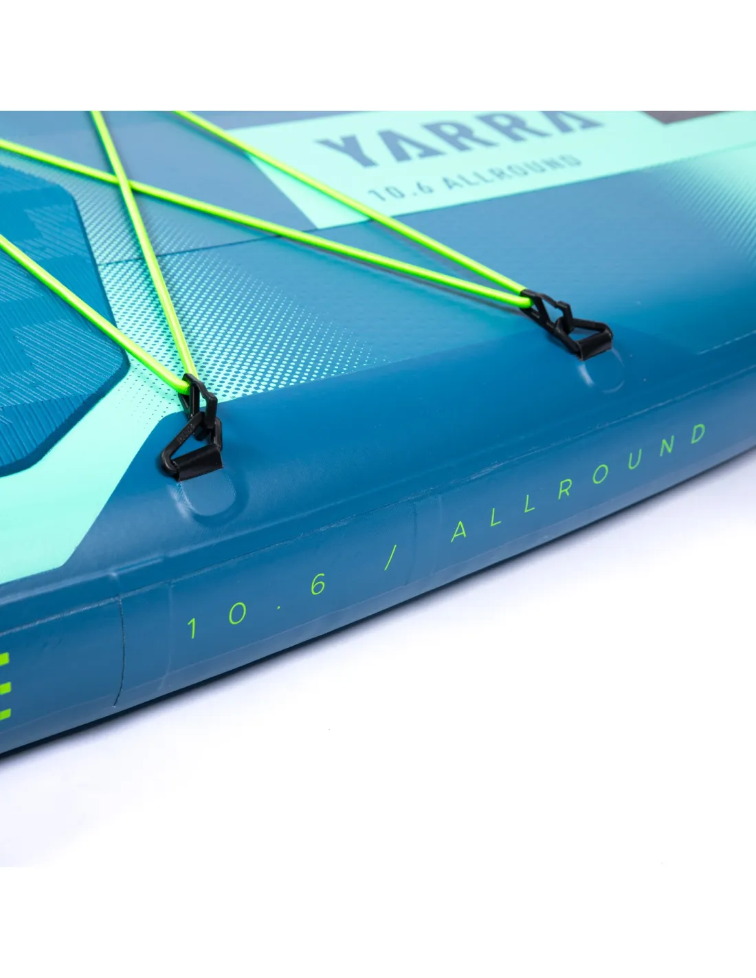 Te presentamos la Yarra, nuestra tabla de stand up paddle hinchable de 10,6 y un excelente ejemplo de cómo la forma se une a la función. Excelente rigidez gracias al uso de nuestra ligera costura X y una construcción de alta calidad y durabilidad mediante el uso de la tecnología Heat Bonded. A continuación, esta tabla cuenta con un nuevo "EZ-Lock Fin" que conecta la aleta a la tabla sin necesidad de tornillos. ¡Esta tabla lo tiene todo para empezar tu nuevo viaje! Proporciona el mejor equilibrio entre maniobrabilidad, estabilidad y velocidad. Este paquete viene con la tabla de SUP Aero Yarra 10.6 Azul Acero, remo ajustable de fibra de vidrio de 3 piezas, mochila impermeable, bomba de doble acción, 10ft / 3,04m leash en espiral.
